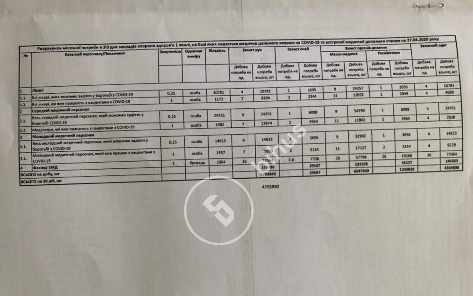При этом часть позиций из перечня по своей расчетной стоимости чуть ли не в два раза превышают стоимость, по которым эти же товары покупают, например, волонтеры, а разница в цене только защитных костюмов, которые Минздрав хочет купить почти 4,5 миллиона, по сравнению с ценой, по которой такие же по характеристикам костюмы закупают благотворители - более миллиарда гривен.