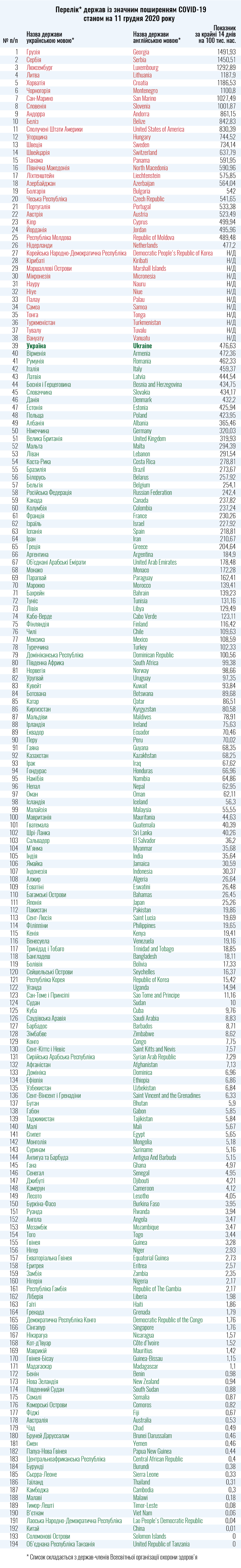 Также Минздрав обновил "красный" список стран по уровню заболеваемости. В список попали 38 стран, 26 из них имеют более высокий уровень заболеваемости COVID-19 за последние 14 дней по сравнению с Украиной, 12 не публикуют статистику