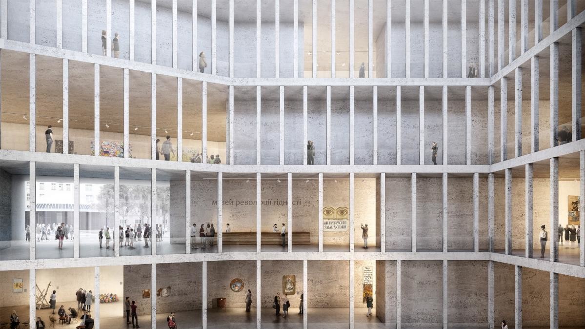Международное жюри выбрало победителем конкурса в номинации "Музей Революции Достоинства" проект "Штурм холма" от архитектурного бюро Kleihues Gesellschaft von Architekten mbH, архитекторы: проф. Ян Кляйхус, Иоганнес Кресснер.