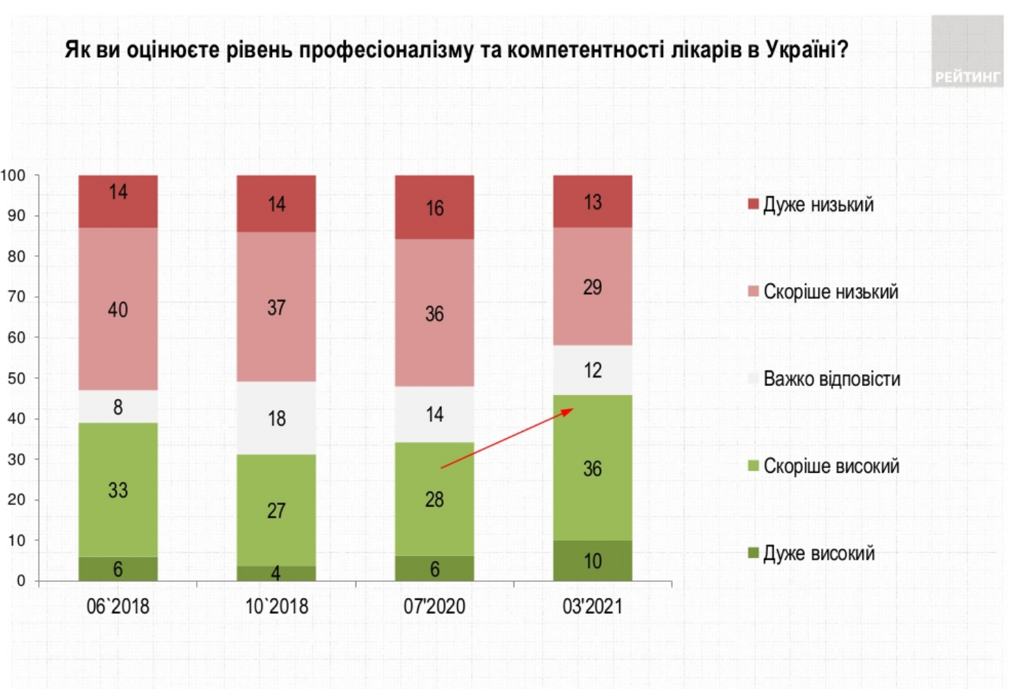 Мнения о том, что профессионализм и компетентность врачей в Украине высоки, придерживаются 46% опрошенных. Об этом свидетельствуют результаты опроса, проведенного Социологической группой «Рейтинг» в течение 24-28 марта.
