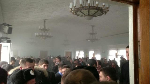 "Наших людей, ни депутатов, ни активистов, не пускают в зал. Милиция фактически бездействует, только оцепила наших нардепов, фактически заблокировав нас в углу зала…. Со стороны регионалов было использовано какое-то химическое вещество, весь зал в дыму, опять драка", - отметил Аронец.
