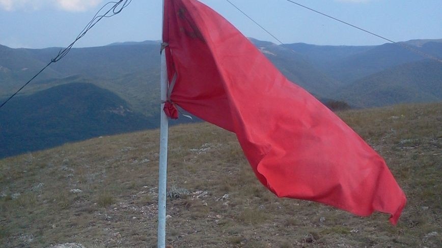 Неизвестные похитили флаг Украины, которые крымские военнослужащие установили 23 августа на горе Замана (западный отрог горы Тырке в Симферопольском районе). Вместо сине-желтого полотнища к флагштоку привязали красное, с серпом и молотом.