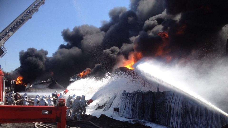Пожар на нефтебазе частной компании "БРСМ-нафта" в Васильковском районе под Киевом начался вечером в понедельник, 8 июня. Утром 9 июня на базе произошел мощный взрыв, с несколькими пожарными была утеряна связь. Позже были обнаружены тела трех из них. Общее число погибших, по официальным данным, достигло пяти. СМИ допускают, что погибших может быть гораздо больше.