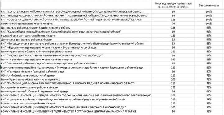 Ранее сообщалось, что в Ивано-Франковской области заполняемость 16 больниц больными коронавирусом или пациентов с подозрением составляет 80-100%. В общем зафиксирован стремительный рост заболеваемости. Больше всего госпитализированных в Ивано-Франковской области (+463), в Винницкой области (+163), в Закарпатской области (+123), Черновицкой области (+124).