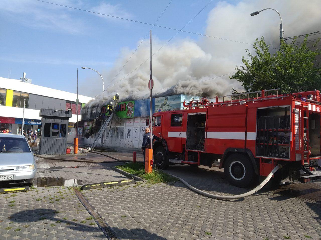 Указывается, что в 09:30 поступило сообщение о пожаре на улице Строителей, 40. По прибытию огнеборцы установили, что горит кровля над четырьмя павильонами рынка площадью 70 кв.м. В 10:39 был локализован пожар на площади 250 кв.м., в 10:55 - ликвидировали. Привлекались 11 единиц пожарно-спасательной техники и 48 человек личного состава Киевского гарнизона.