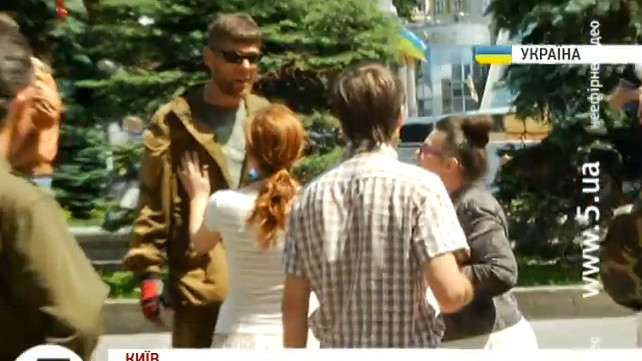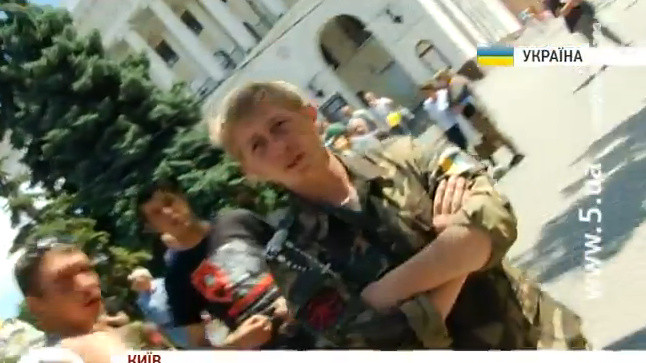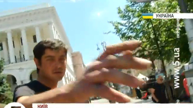 Днем в среду, 2 июля, когда журналисты снимали баррикады на улице Городецкого (возле Консерватории), неизвестные в камуфляжной форме пытались помешать съемкам.