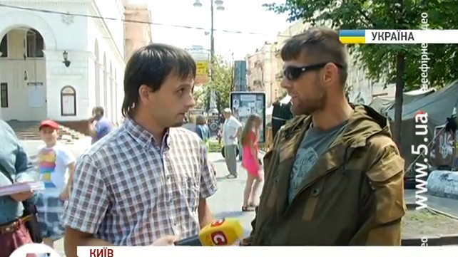 Мотивируя это якобы нежеланием показывать собственные лица на камеру, а также недоверием к работе прессы, несколько человек в камуфляже и футболках с черно-красной символикой в грубой форме требовали стереть отснятый материал. Когда оператор отказался это сделать - применили силу.