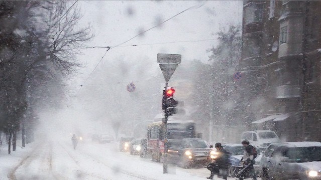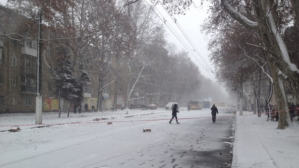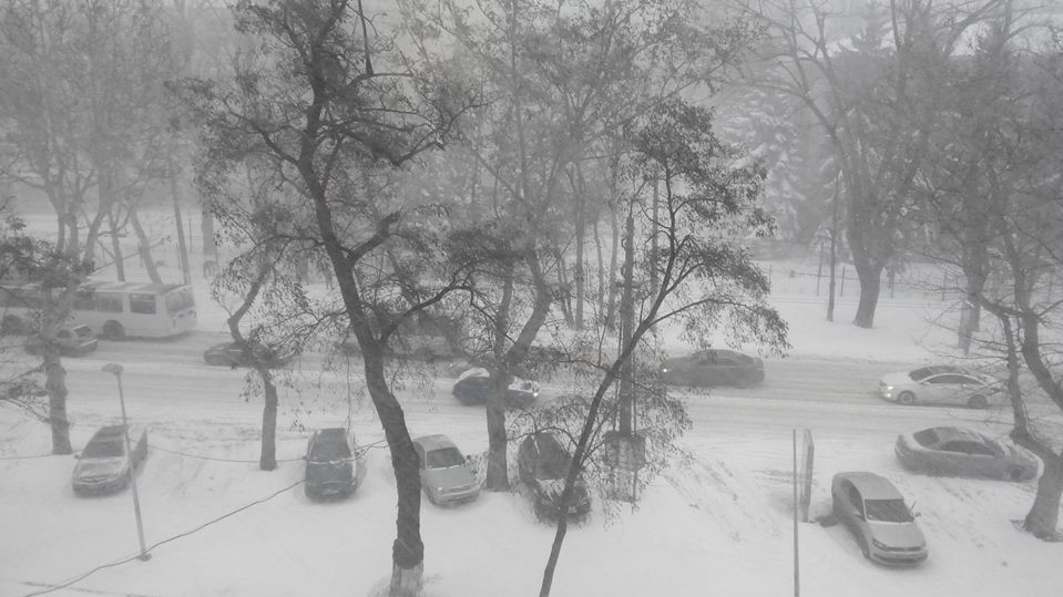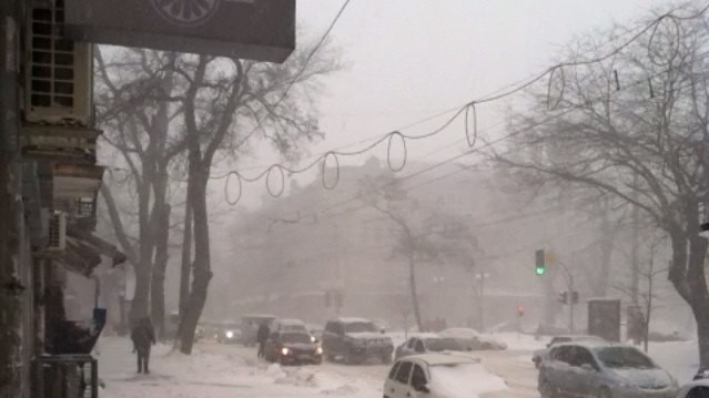 На 3обрушился сильный снегопад с утра в понедельник, 29 декабря. Порывы ветра в городе достигают 20 м/с при температуре около 5оС. По прогнозам синоптиков, пик непогоды в Одессе ожидается с 14 до 16 часов понедельника.