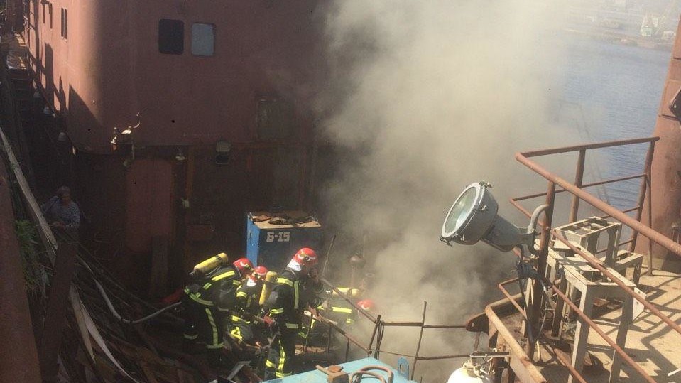 В Киеве на пришвартованном судне на территории завода "Кузня на Рыбальском" произошел пожар. Как сообщили в Государственной службе по чрезвычайным ситуациям в Киеве. возгорание произошло в трюме пришвартованного судна.