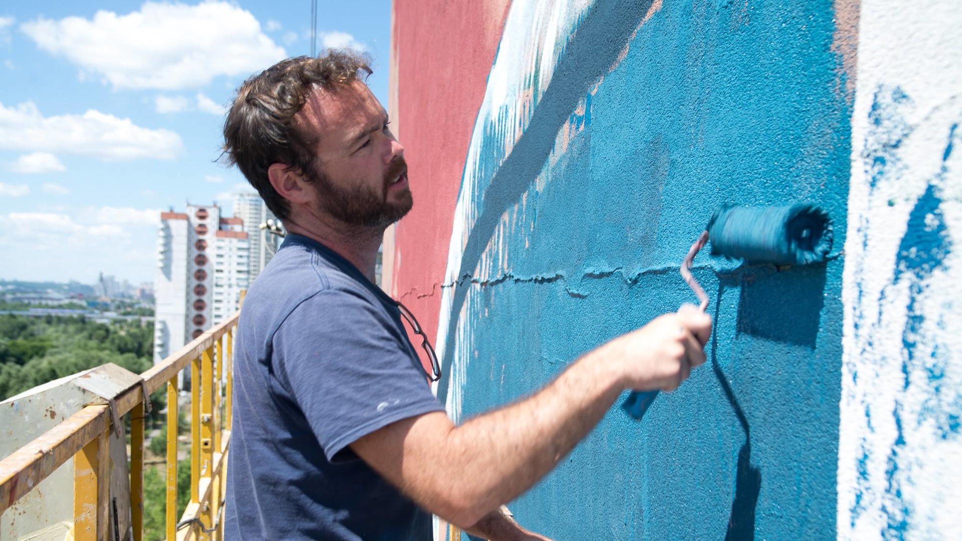 В Деснянском районе Киева в середине июля был завершен мурал на 17-этажном доме. Художник из Австралии Финтан Мэджи (Fintan Magee) изобразил на доме девушку с цветами в полный рост.