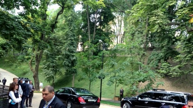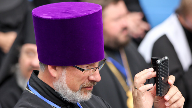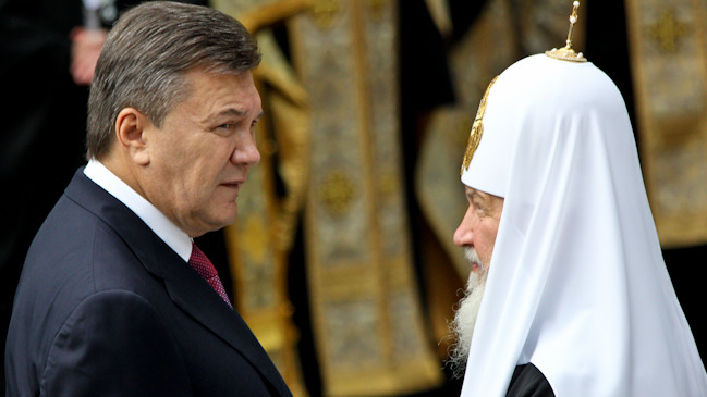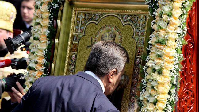 В свою очередь, опоздавший Владимир Путин пришел пешком. Президент Украины Виктор Янукович на молебен прибыл с противоположной стороны от входа.