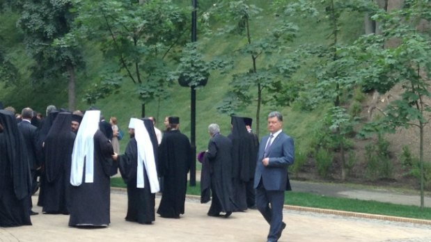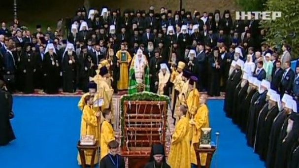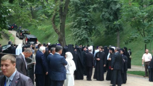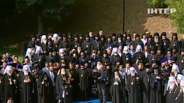 Делегация с предстоятелями Православных церквей накануне прибыла в Киев из Москвы на литерном поезде и доставила в Киево-Печерскую лавру крест апостола Андрея Первозванного, привезенный из Греции в Россию, а затем и в Украину. !zn