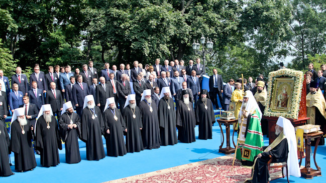 В молебне принимали участие глава Русской православной церкви патриарх Кирилл, глава Украинской православной церкви Московского патриархата митрополит Владимир. Присутствуют 9 из 15 глав православных поместных церквей: предстоятели Александрийской церкви Феодор II, Иерусалимской церкви Феофил III, Русской церкви Кирилл, Грузинской церкви Илия II, Сербской церкви Ириней, Болгарской церкви Неофит, Кипрской церкви Хризостом II; Польской православной церкви Савва, Церкви Америки и Канады Тихон.