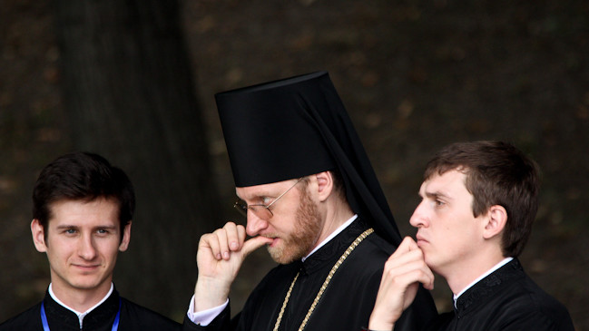 - вечернее богослужение УПЦ на Соборной площади Киево-Печерской лавры;