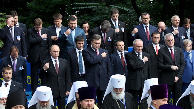 В молебне также принимали участие президент Украины Виктор Янукович, президент России Владимир Путин, президент Молдовы Николай Тимофти и президент Сербии Томислав Николич.