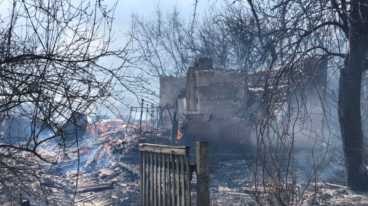 Через 2,5 часа из-за сильных порывов ветра огонь фронтом 500 м распространился в направлении села и охватил 27 строений на одной из улиц возле поля.