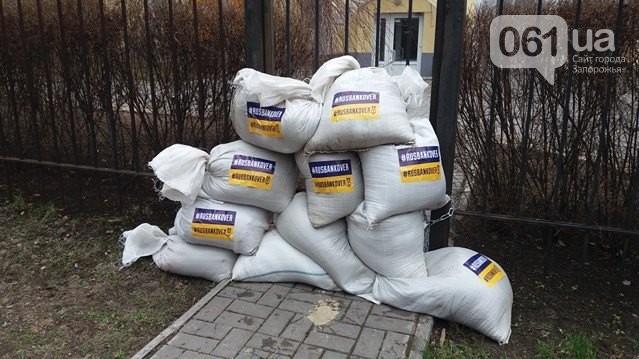 В Запорожье представители партии "Национальный корпус" (бывший "АЗОВ") заблокировали вход в центральное отделение "Сбербанка", сообщает городской сайт 061.ua. Они установили на въезде на территорию банка бетонные блоки, заблокировали цепями ворота и вывесили плакаты. Организаторы требуют от "Сбербанка России" закрыть свои отделения в Запорожье и во всей Украине. Согласно заявлениям представителей "Национального корпуса", они намерены стоять днем и ночью, пока российское финансовое учреждение окончательно не закроется.