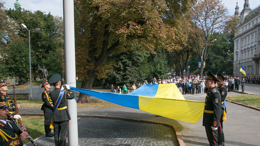 Гигантский флаг Украины был доставлен во Львов из Крыма. Национальный символ-рекордсмен достигает 21,6 метра в длину и 14,4 метра в ширину. Впервые он был поднят в Евпатории в 2008 году.