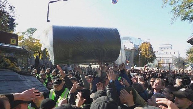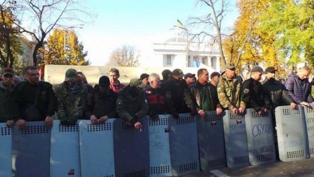 Участники акции заявили о намерении оставаться под зданием Верховной Рады как минимум до четверга, поскольку ожидают, что именно 19 октября парламент рассмотрит их требования.