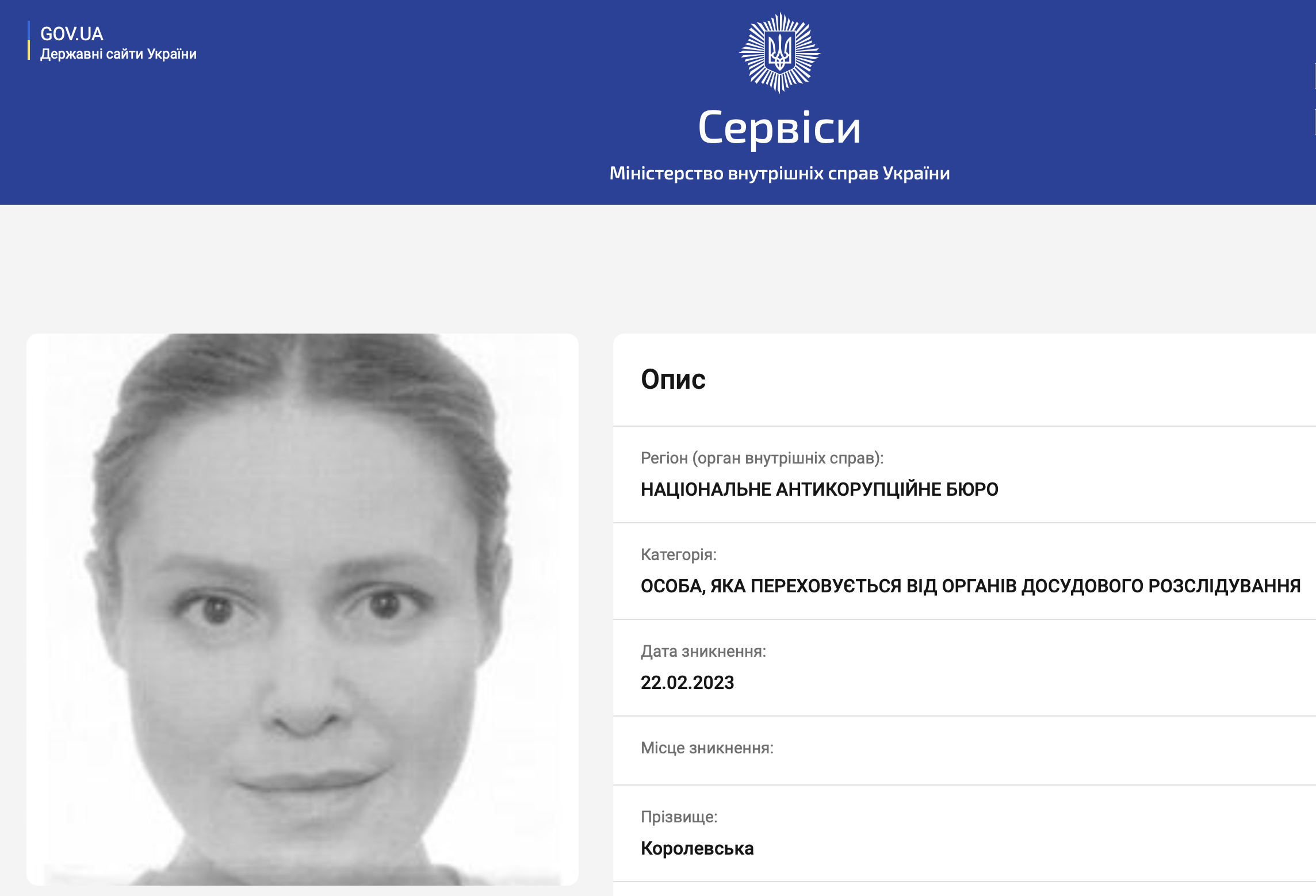 Национальное антикоррупционное бюро объявило в розыск депутатку от запрещенной в Украине партии "Оппозиционная платформа — за жизнь" Наталью Королевскую. Об этом сообщает Министерство внутренних дел Украины.