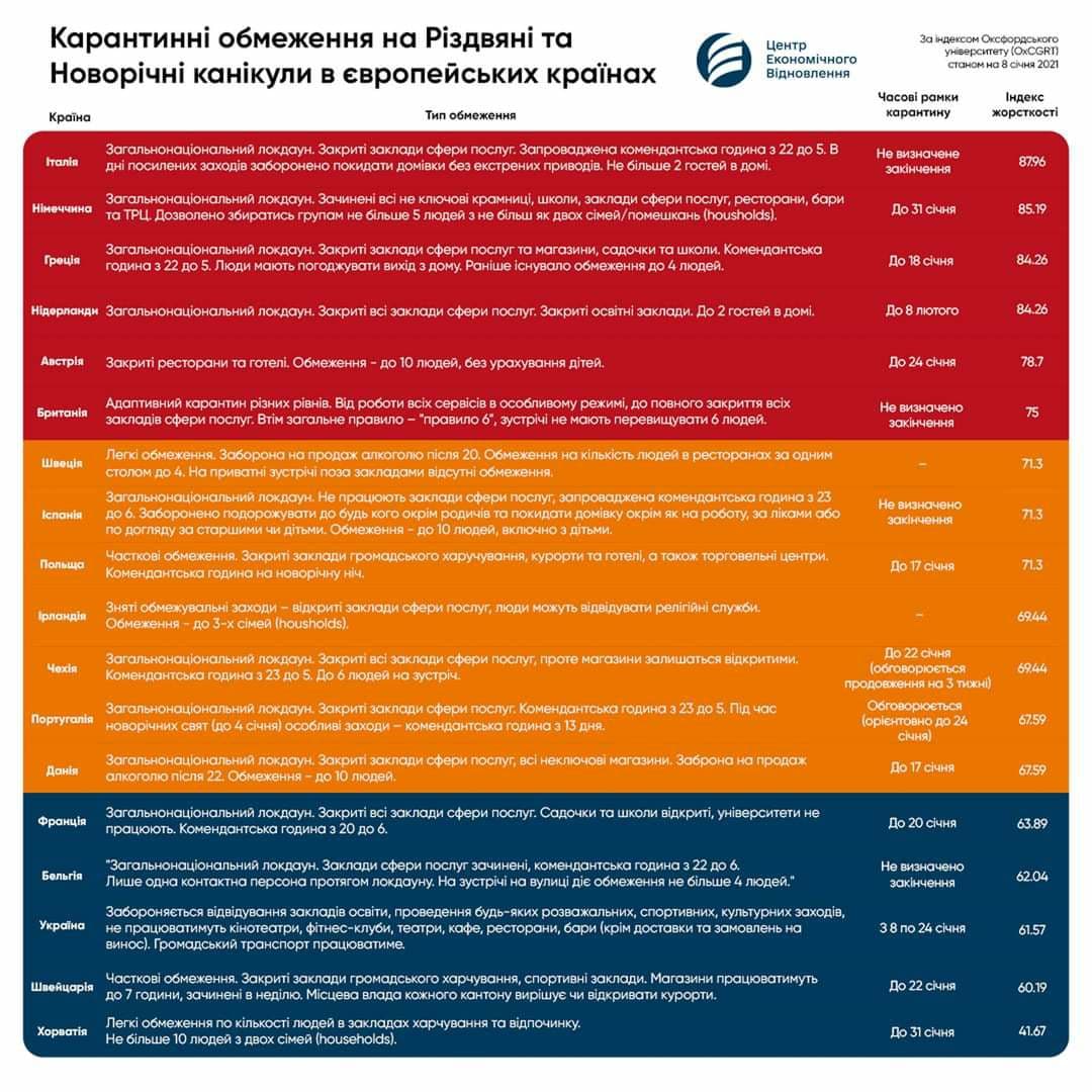 "В ряде стран Европы в последнее время ввели еще более строгий и длительный карантин. Среди причин - риски распространения нового штамма COVID-19 и перегрузки медицинской системы. Украина все еще принадлежит к странам с наиболее мягкими карантинными ограничениями, согласно индексу Оксфордского университета", - написал Немчинов.