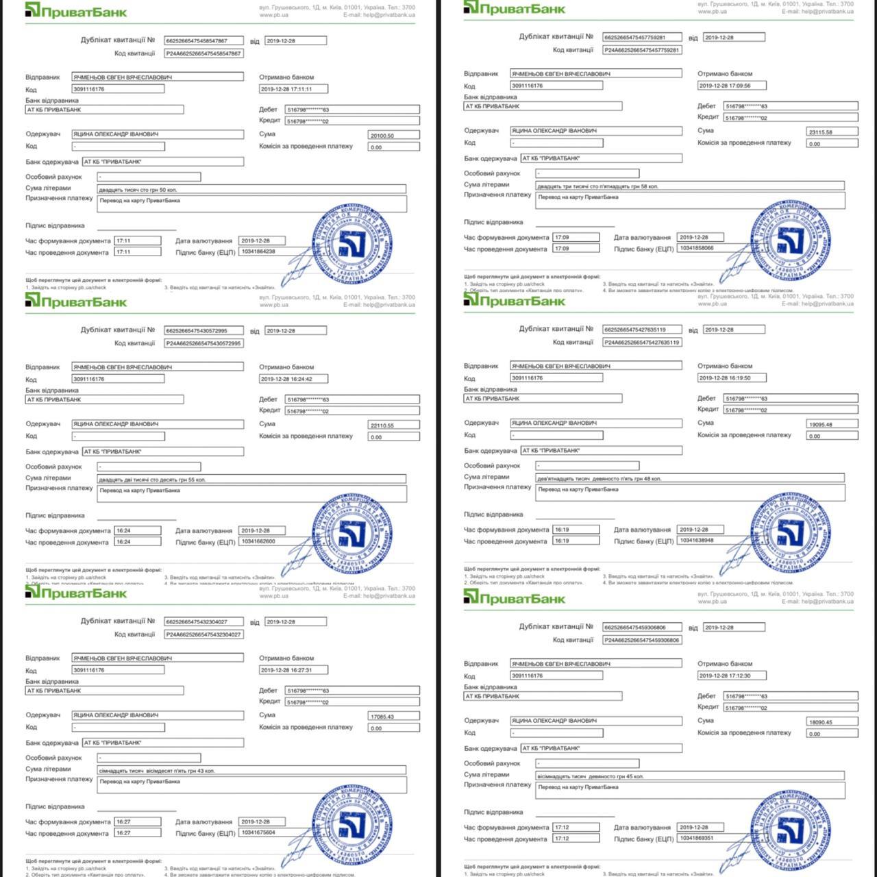 Как сообщил в комментарии Евгений Ячменев, он совершил около 15 переводов на личную карточку Яцыны на общую сумму 400 тыс. грн, который пообещал приобрести за эту сумму препарат для химиотерапии за границей, которого нет в Украине.