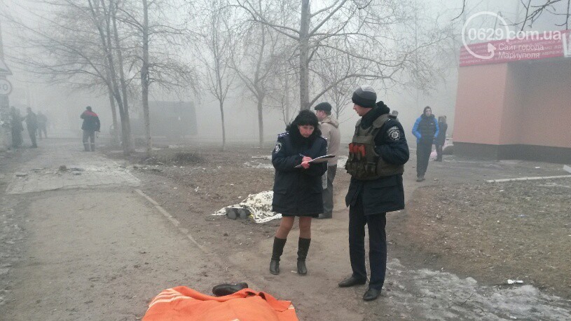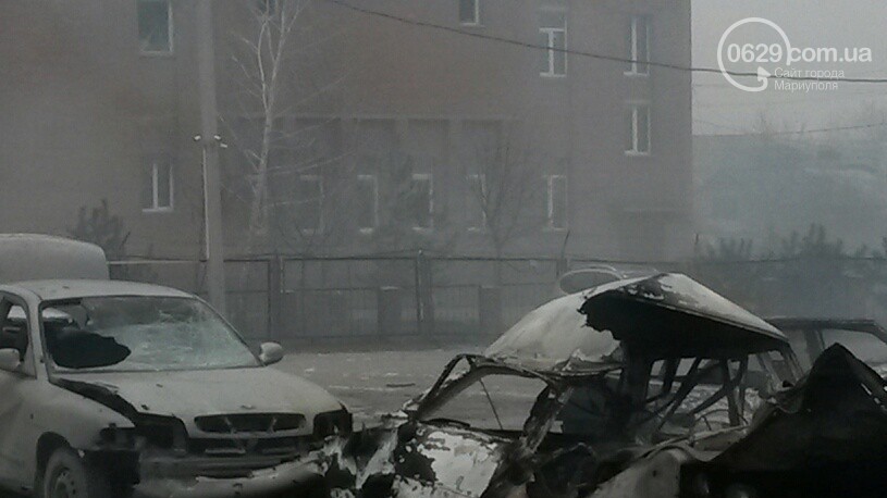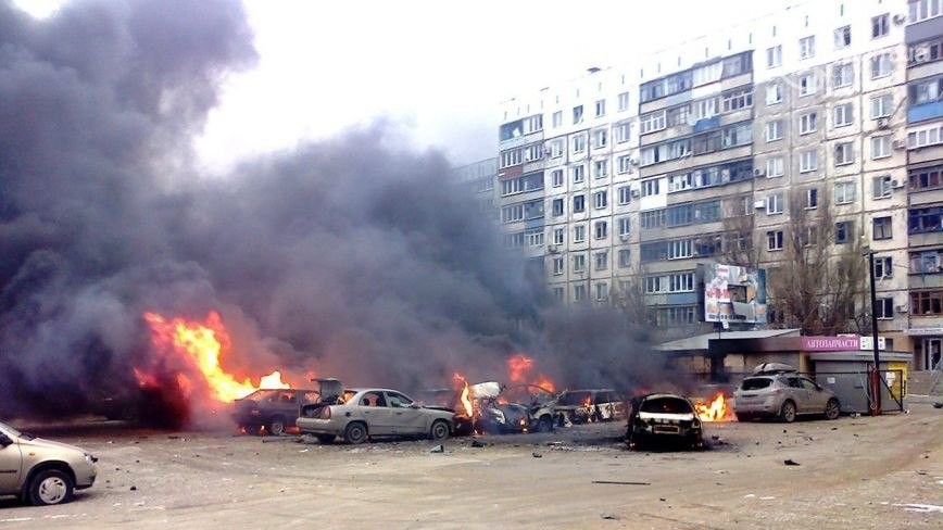 В результате обстрела Мариуполя боевиками из "Градов" погибли 10 человек, в городе значительные разрушения. Работают пожарные и скорые.