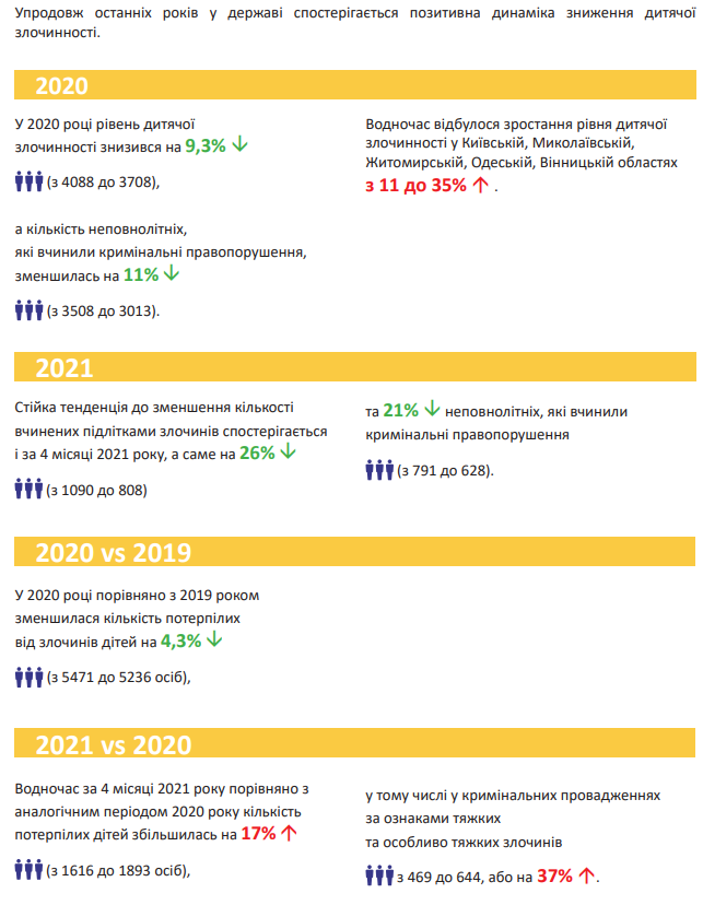 В то же время в Киевской, Николаевской, Житомирской, Одесской и Винницкой областях уровень детской преступности вырос с 11 до 35%.