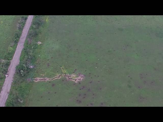 В сети опубликовано видео, на котором зафиксирован опорный пункт российско-террористических войск в районе Широкино Донецкой области. Видео снято при помощи квадрокоптера.