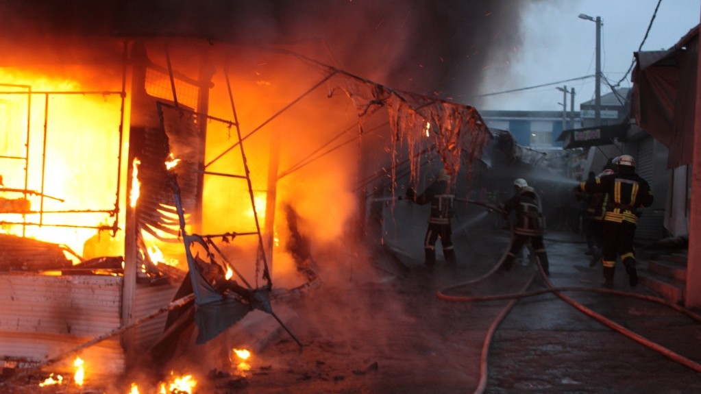 Горела секция киосков площадью 80 м2. Чтобы не дать пламени распространиться, на пожар примчались 45 спасателей при 8 единицах техники. Благодаря их оперативным действиям, от огня были спасены 60 киосков и трехэтажный торговый центр, расположенные в непосредственной близости.