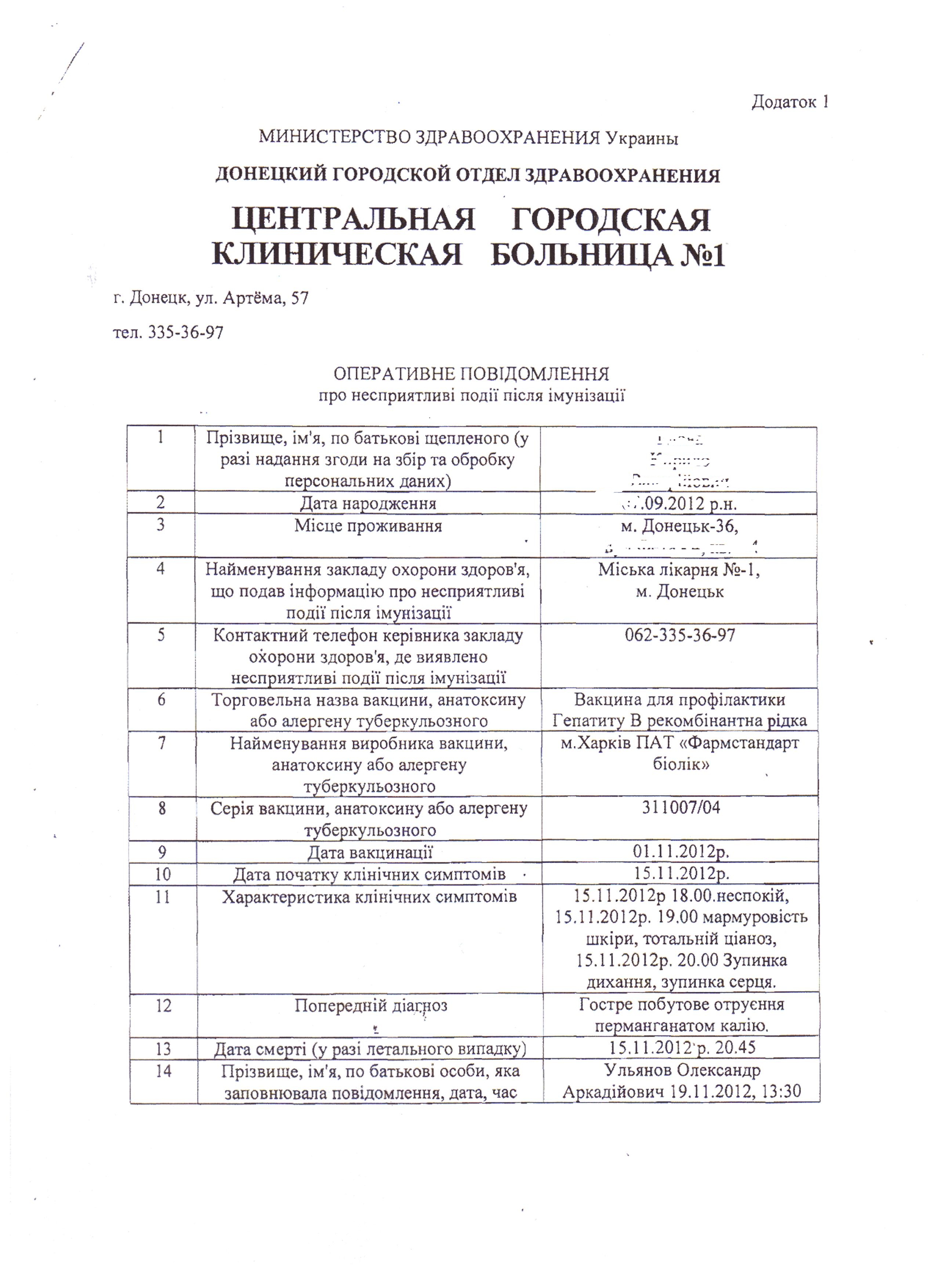 В 2012 году от вакцин, которые Министерство здравоохранения закупало у фирмы "Фармстандарт-Биолик", которая принадлежит сыну министра 3, умерли восемь детей. Об этом говорится в заявлении народного депутата Андрея Сенченко ("Батьківщина").