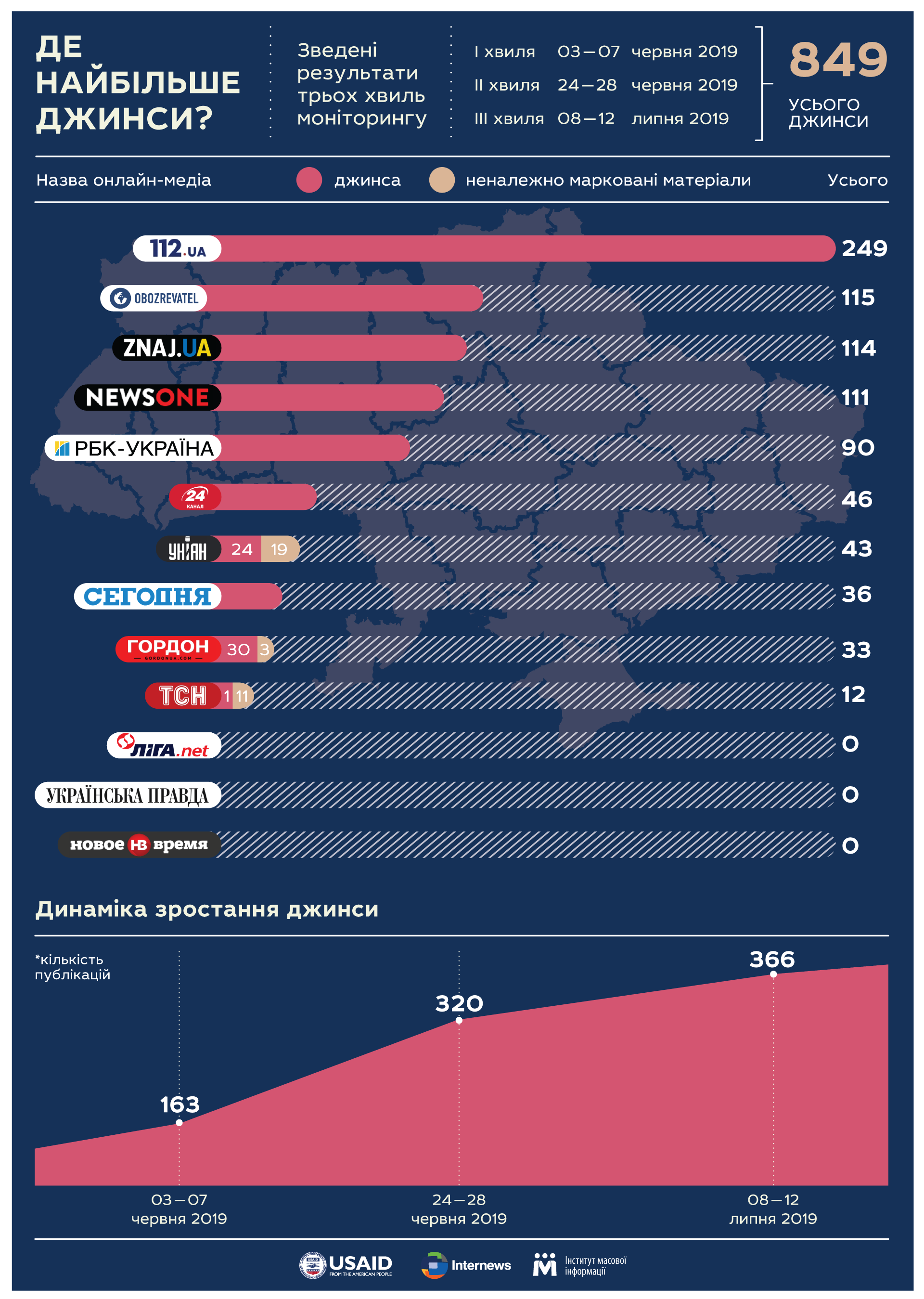Так, за три волны мониторинга (пять суток каждая) во время президентской кампании было зафиксировано 414 материалов с признаками заказа, а за аналогичный период парламентской – уже 849. При этом только 3,5% из них были маркированы как рекламные, однако и эта маркировка не соответствовало закону "О рекламе".