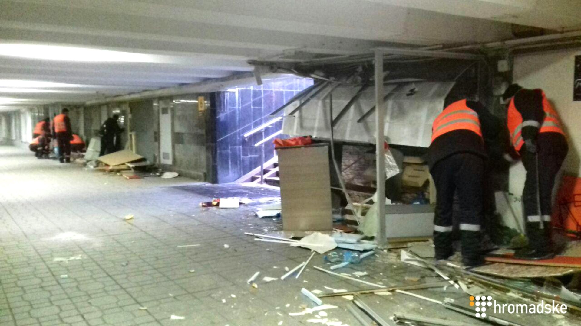 В то же время начальник управления патрульной полиции Киева Юрий Зозуля отметил, что во время демонтажа движение по подземному переходу будет частично ограничено, это продлится около двух дней. "Совместно с КГГА контролируем, что все происходит на законных основаниях. Сейчас немного тяжело, потому что начался демонтаж, а в переходе много людей. Будем понемногу перенаправлять людей", - сказал Зозуля.