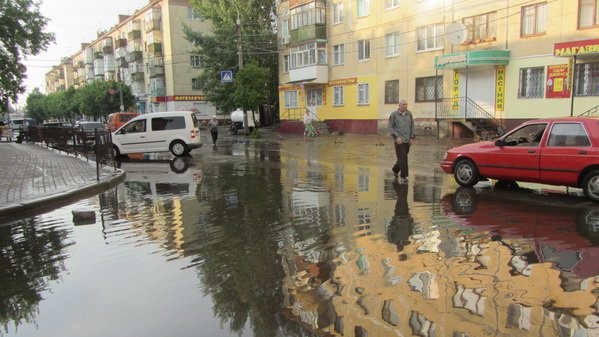 Потоп был также под окнами Житомирской мэрии, на Большой Бердичевской. А вода на улице Хлебной возле Житнего рынка не сошла и пять часов спустя после дождя.