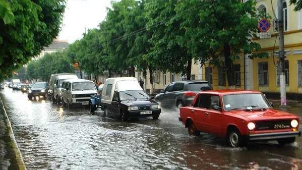 Первый майский ливень в Житомире, который продолжался не более получаса, затопил практически весь город из-за забитой ливневой канализации.