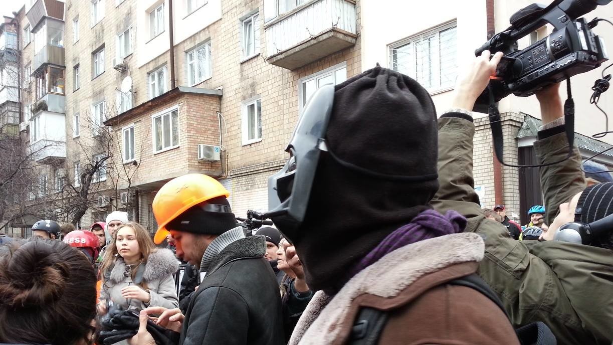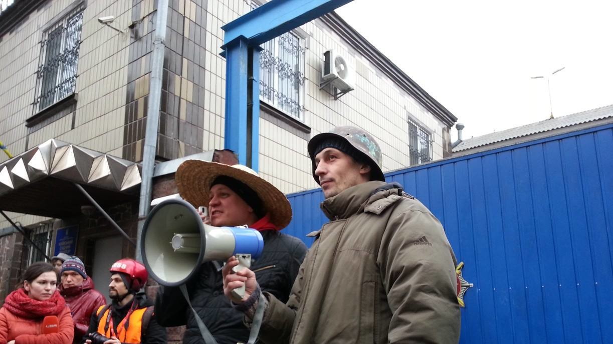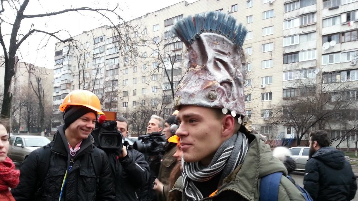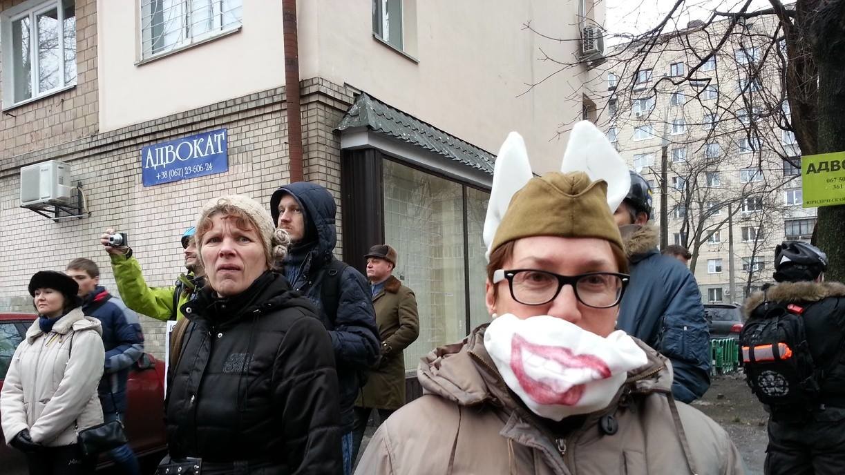 Участники акции, одетые кто в каски, маски, кто – в другие модные ныне головные уборы вроде кастрюль и мисок, разбили под стенами Лукьяновского СИЗО палатку, выступали, читали стихи и стучали в двери заведения с намерением добровольно сдаться властям. Однако двери не открылась.