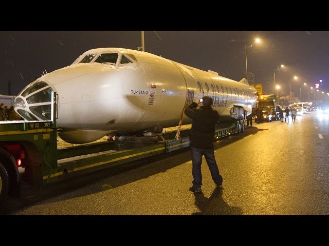 При этом во время движения самолета полностью движение транспорта не перекрывали. Колонна с частями самолета передвигалась только по одной перекрытой полосе.