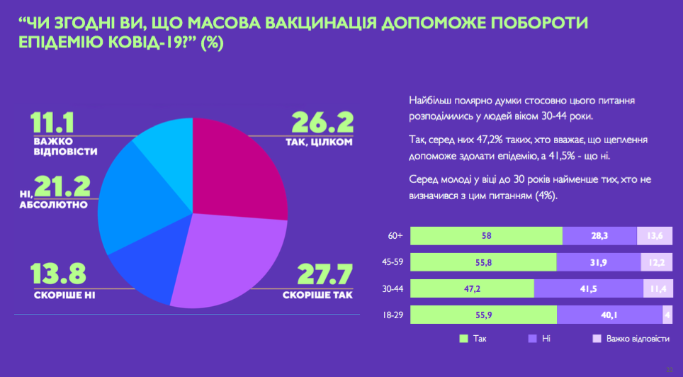 Нет опасения относительно вакцинации только в 14,8% опрошенных украинцев.