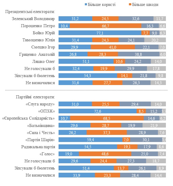 Отмечается, что по сравнению с маем 2013 года, когда КМИС задавал аналогичный вопрос (для корректности сравнения из выборки 2013 года были исключены временно оккупированные АР Крым и отдельные территории Донецкой и Луганской областей), с 48% до 35% стало меньше тех, кто видит в советском периоде больше пользы. В то же время, тех, кто видит больше вреда, стало больше с 18% до 28%, а тех, кто "не может оценить, чего было больше, стало меньше с 31% до 25,5%.