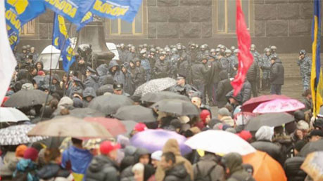 Под Кабмином собираются митингующие за отставку Азарова. Беркут уже ждет