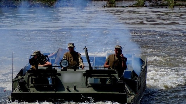 На военном полигоне под Николаевом в рамках подготовки к бригадным тактическим учениям мотопехотные подразделения оперативного командования "Юг" провели учения по преодолению водных препятствий, сообщает оперативное командование "Юг" на своей странице в Facebook.