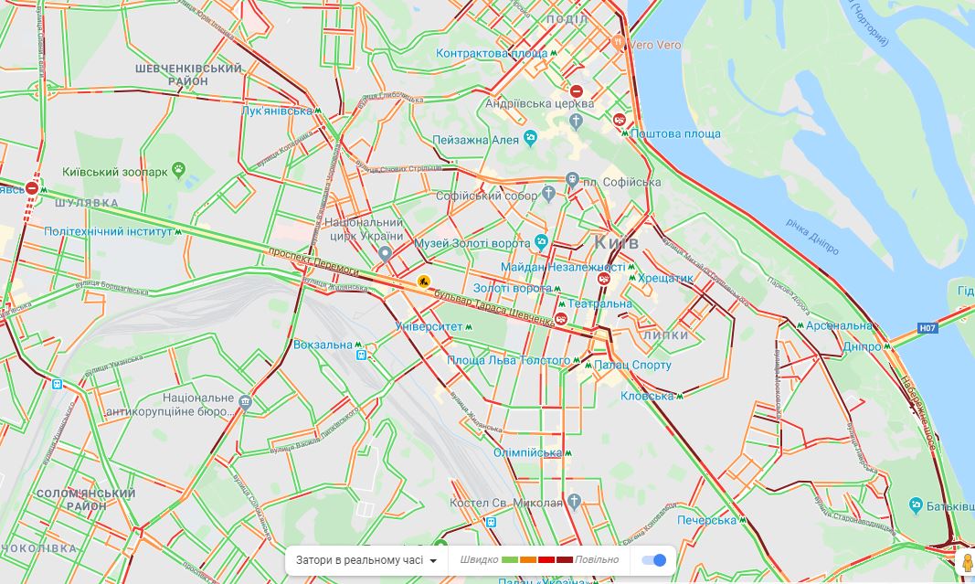 Тем не менее в городе образовались серьезные пробки. Движение затруднено на большинстве магистралей Киева.