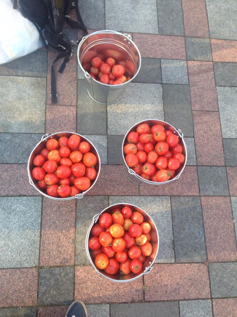 Однако им все-таки удалось пронести 11 ведер с помидорами на площадь Конституции. Они утверждают, что эти помидоры предназначены для тех депутатов, которые не будут голосовать за антикоррупционные законопроекты.