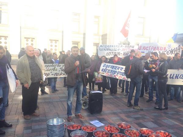 Активисты Майдана привезли в Верховную Раду 200 кг помидоров, которыми они собираются забрасывать народных депутатов, не проголосовавших за антикоррупционные законопроекты.