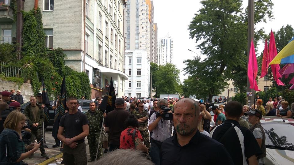 Позже под здание САП пришла третья группа активистов во главе с Всеволод Филимоненко, который называет себя журналистом. Они спровоцировали конфликт между супротивниками, и по данным издания, именно они облили зеленкой и забросали тортами Илью Киву и руководителя ЦПК Виталия Шабунина.