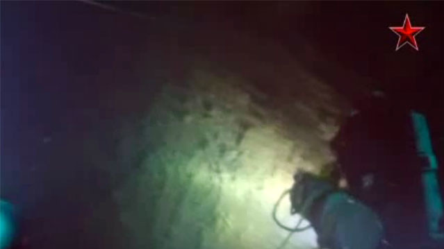 Капитан российского судна "Николаев" Гай Юрченко рассказал: "Шторм пятибалльный, достаточно неспокойное море. Глубина - 97 метров, абсолютная темнота. Но аппаратура, которая находится у нас на борту, позволяет нам отсканировать этот объект". Оборудование "Николаева" позволяет воспроизводить трехмерную модель крупных предметов на дне. По размерам корабля (его длина более 100 метров) и некоторым другим деталям ученым удалось быстро определить, что это за судно и когда оно ушло под воду.