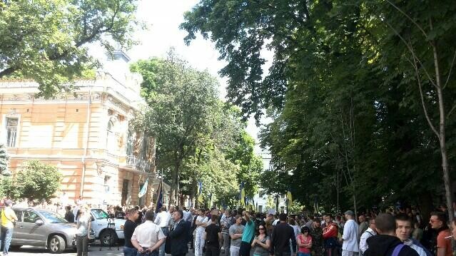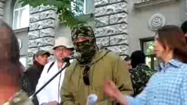 Командир батальона "Донбасс", который и призвал людей выйти под стены Администрации, попросил присутствующих вести себя цивилизованно - ничего не бросать, не бить и не уподобляться "москалям".