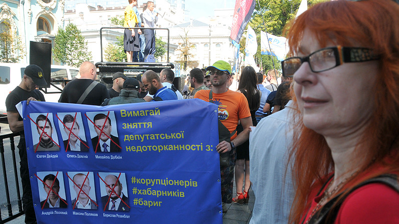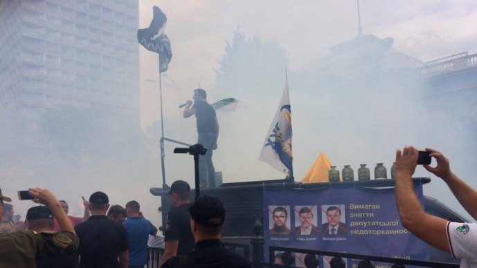 В Киеве под зданием парламента активисты устроили митинг, требуя снять неприкосновенность с шести народных депутатов.