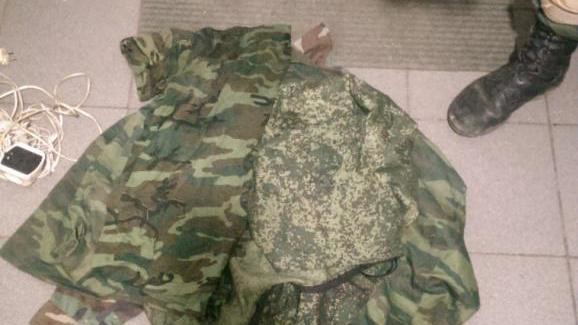 Осматривая его вещи, пограничники нашли много интересного, среди чего: удостоверение народного ополченца "ДНР", подписанное "командующим ополчением ДНР Стрелковым И.И.", блокнот с записями контактных телефонов и инструкциями по выходу на связь, карты Славянска, Краматорска, Донецкая, Амвросиевки, распечатанные из интернета, 4 комплекта военной полевой формы и 3 пары армейской обуви, нож, пилу по металлу, набор инструментов, противогаз, сумку для магазинов, банковские карты, две УКВ радиостанции с запасными антеннами и зарядные устройства, GPS навигатор, 3 мобильных телефона, фотоаппарат и др..