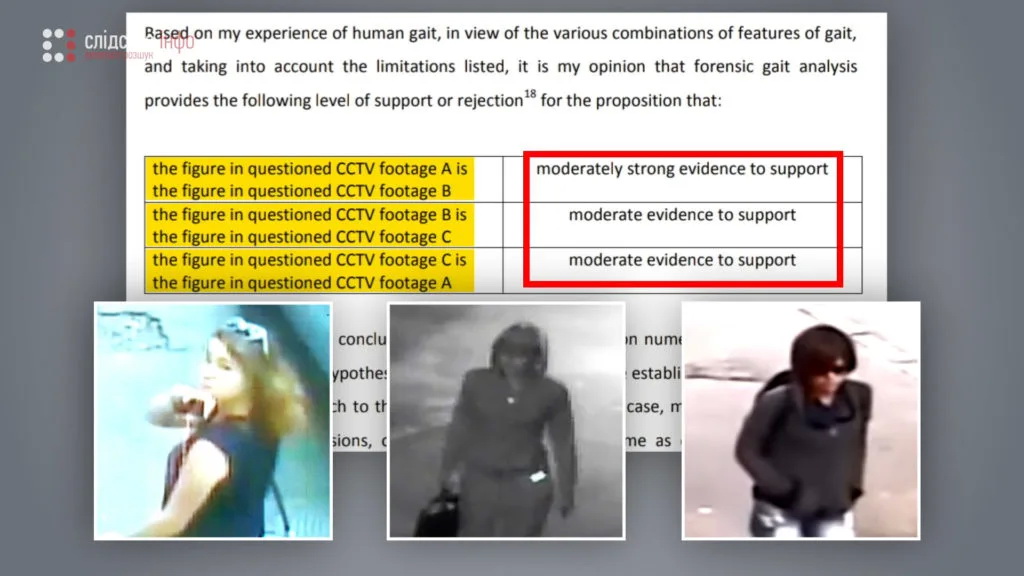 В первом случае британский эксперт сравнивал женщин на видеозаписях с места преступления, чтобы определить их схожесть. Тогда он пришел к выводу, что в трех случаях возле дома Шеремета с существенной долей вероятности была зафиксирована одна и та же женщина.